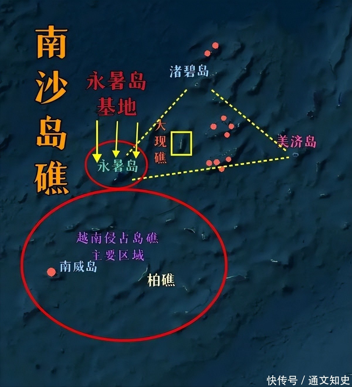 永暑礁、美济礁、渚碧礁三大核心岛礁构成战略三角,配备机场、港口、雷达站,可进行全天候补给与空中打击。